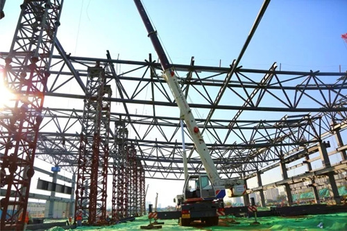 济南西部会展中心建设全面推进中,五号展馆主体钢结构基本完成