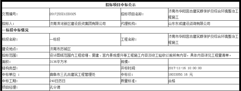 济南市华阳宫古建筑群保护及综合环境整治工程施工中标公示