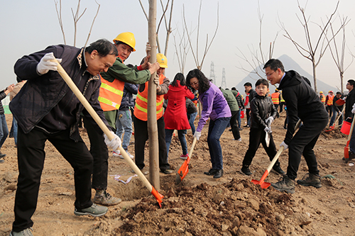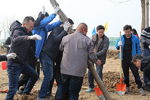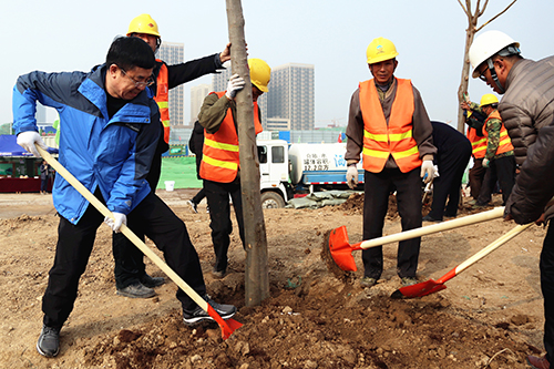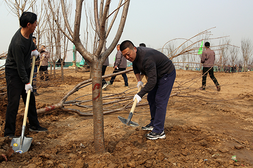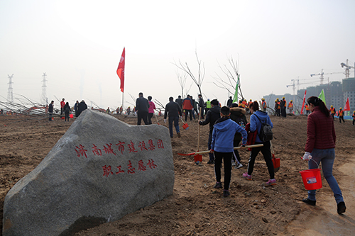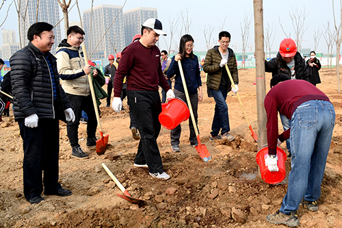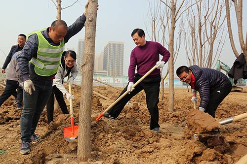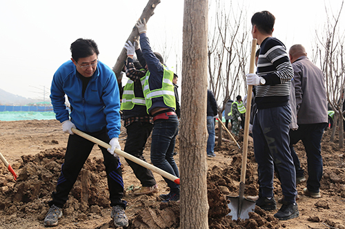 在第40个植树节来临之际,3月10日上午,济南城市啪啪啦组织干部职工在华山生态湿地公园园林一期B区开展义务植树活动。集团党委书记、董事长李国祥,集团党委副书记、总经理李培杰等集团领导及150多名干部职工参加了植树活动,共栽种栾树、白腊树、樱花树、五角枫等各类苗木600余棵。