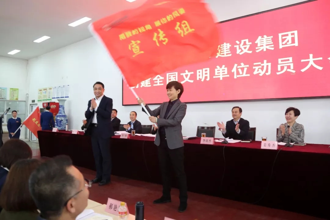 根据统一部署安排,集团成立了以董事长李国祥为组长,总经理李培杰为副组长,其他领导班子成员为组员的创建全国文明单位工作领导小组,负责对创建工作的领导、组织和协调工作。领导小组下设创建综合组、党建教育组、宣传组、制度与法治建设组、文明风尚组、创建活动组等六个工作组,具体负责创建工作的组织开展。会上,李国祥董事长对六个工作组进行了现场授旗。