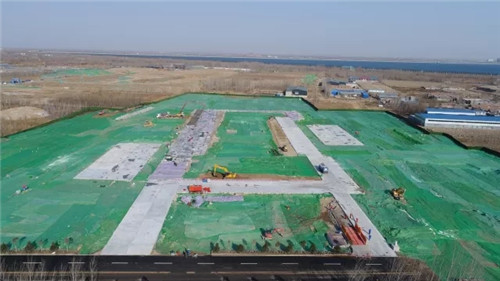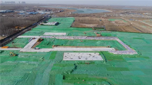 “截至目前,现场已完成场地清表、平整、回填土方约12万立方米,浇筑混凝土约2700立方米,硬化面积约9000平方米。”