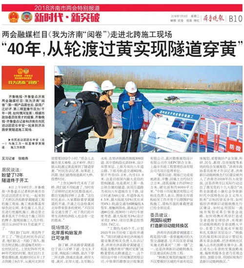 齐鲁晚报·齐鲁壹点济南两会融媒栏目《我为济南“阅卷”》第一期产品面世后,获得广泛好评。第二期直播节目为《千年一跨,如何携河发展》,根据市政协委员张育才的提案,齐鲁晚报·齐鲁壹点记者和济南市市民巡访团团长辛安一起来到济泺路穿黄隧道施工现场。