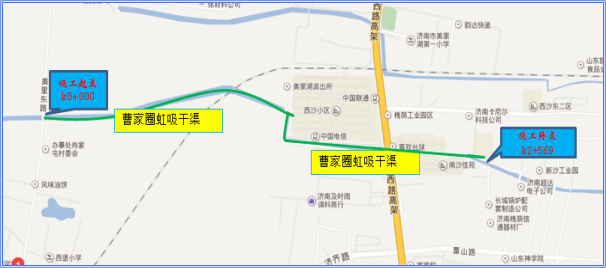 曹家圈虹吸干渠的流域范围集中在小清河以北的建成区内。近些年来随着城区北部的开发建设,北部片区发展迅速,排污量增加,由于市政排水设施的建设相对滞后,河道周边污水直接排入河道,污染水体,致使河水黑臭,影响周边居民生活质量。