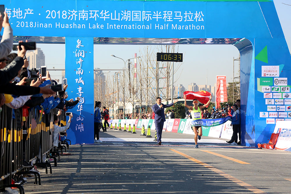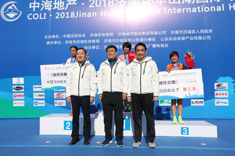 经过激烈角逐,男子组前三名分别由枣庄选手李子成和两名肯尼亚选手获得,女子组前三名分别由辽宁选手王佳伟和两名济南选手获得。除了半程马拉松,赛事还设置了迷你马拉松(5公里)以及家庭亲子跑,大家共享了运动的快乐。来自国内外的5000余名跑马爱好者在华山湖畔用脚步丈量华山生态人文新城,感受“齐烟九点”和“鹊华烟雨”的魅力。