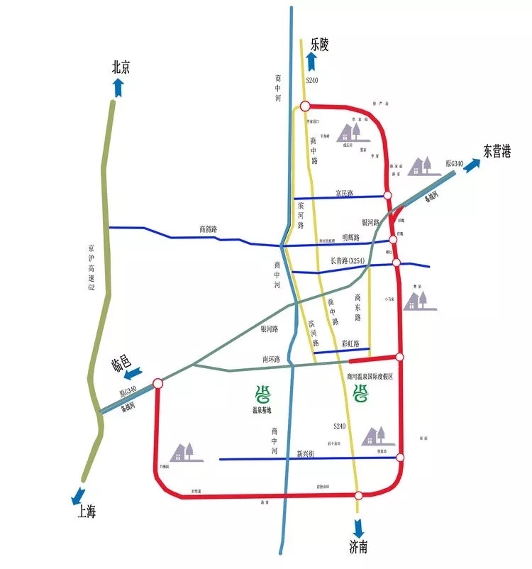 G340东子线及S240盐济线商河绕城段改建工程位于商河县境内,是商河县绕城公路东线、南线和西线的一部分,项目起点位于城区北商中路与原S240线交叉口,项目终点位于商河县西甜水井箱涵,路线全长约21.5公里,一级公路标准。该项目通车后,过境车辆可由“穿城而过”变为“绕城而走”,最大限度发挥340国道公路交通主骨架作用对拓展商河县城市发展空间,促进区域经济发展,落实济南市“携河北跨”,具有十分重要的意义。