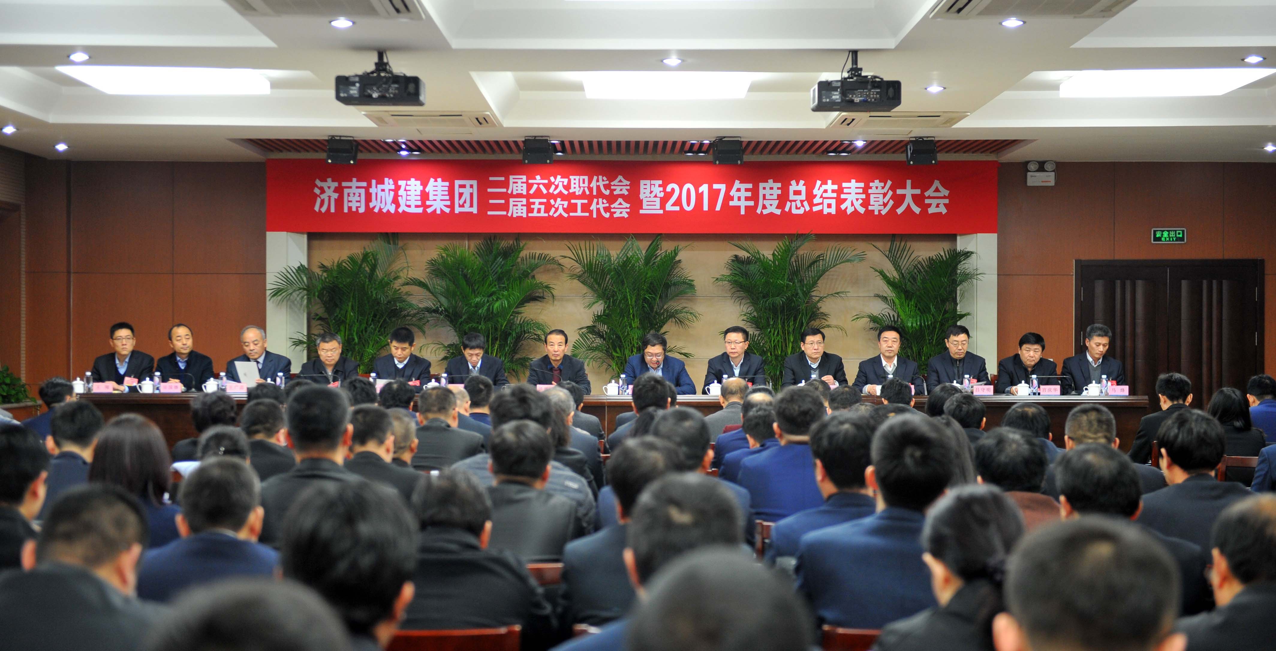 二届六次职代会二届五次工代会暨2017年度总结表彰大会于2018年2月2日在四楼多功能厅隆重召开。集团领导班子成员;集团职工代表、工会会员代表;中层干部、党员、团员、新员工代表;2017年度获得表彰的先进单位和先进个人共200余人参加会议。大会由集团党委副书记、总经理牟晓岩主持。
