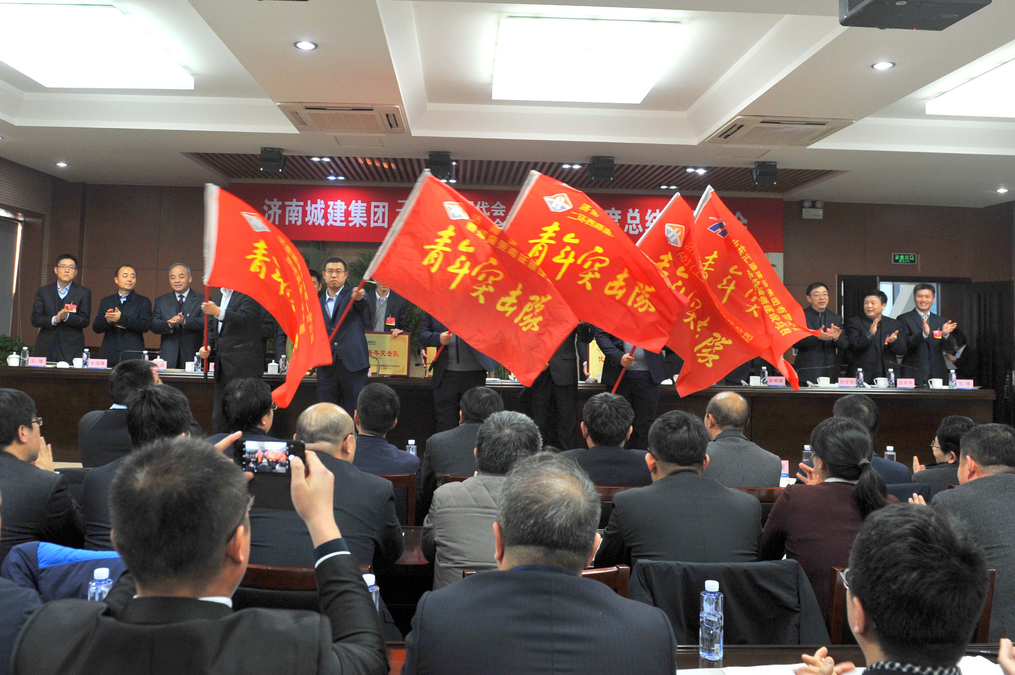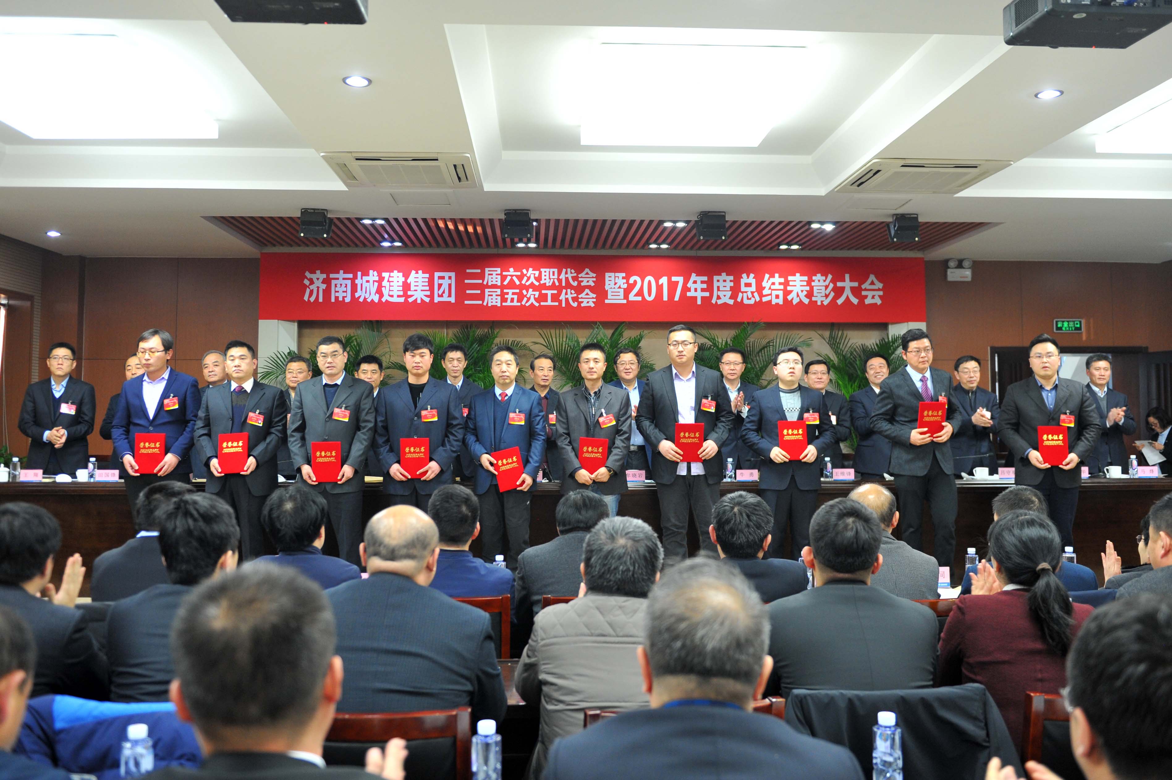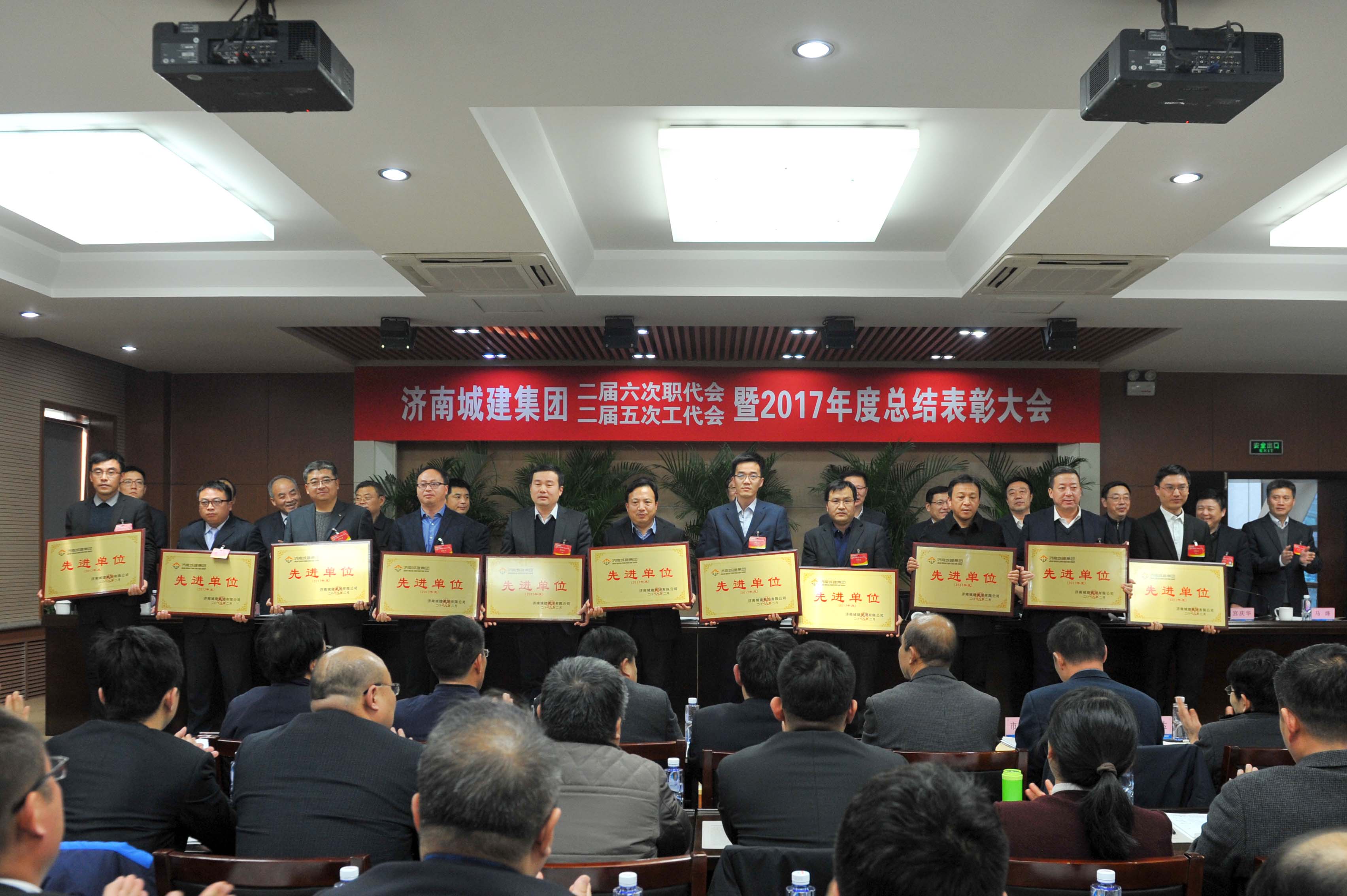 在2017年度总结表彰大会上,宣读了集团党委《关于表彰2017年度先进基层党团组织和先进个人的决定》、集团《关于表彰2017年度先进单位、先进集体和先进个人的决定》及集团工会《关于表彰2017年度先进分会和先进工会小组及工会积极分子的决定》。2017年度先进单位、集体及个人代表上台领取了奖牌和荣誉证书。会议提出,各单位要以先进典型为榜样,充分发扬“拼搏、创新、团队、奉献”的城建铁军精神,凝心聚力,开拓创新,为实现集团新的跨越发展做出更大贡献。