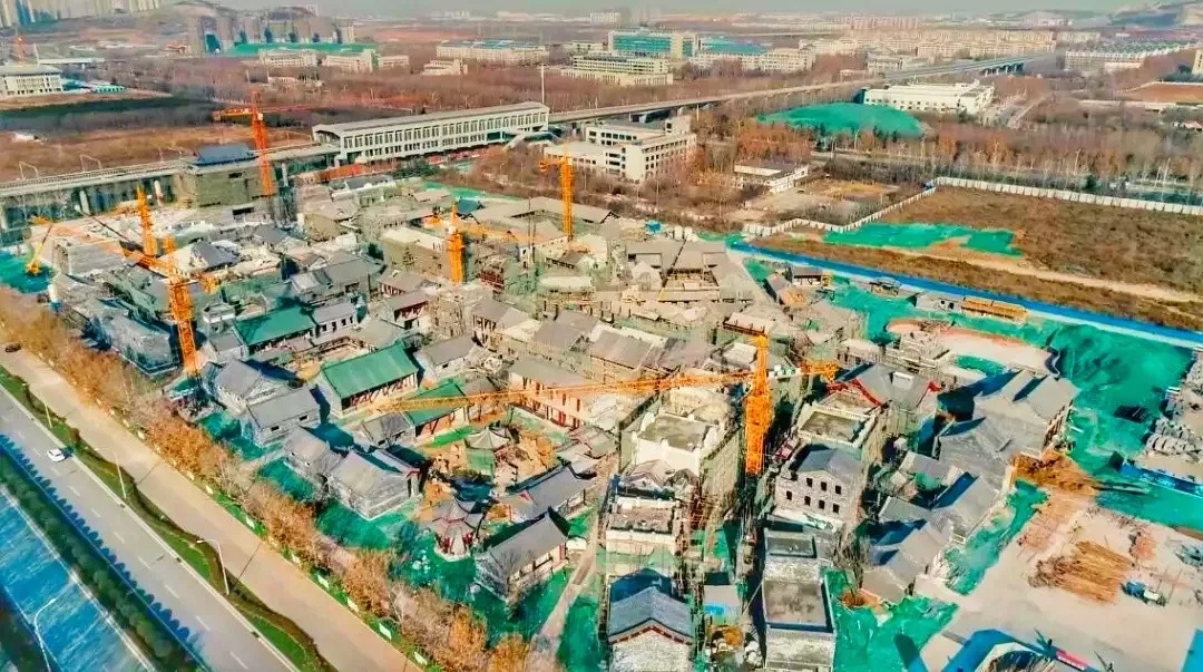 截至目前,老济南街项目已全面进入仿古外装饰施工阶段,其中木结构安装完成约95%;外墙砖砌筑完成约90%;石作安装完成约80%;屋面挂瓦完成约85%;油漆彩绘完成约65%。同时,项目的绿化、水系、铺装等景观建设、水电暖通等专项施工同步开展。