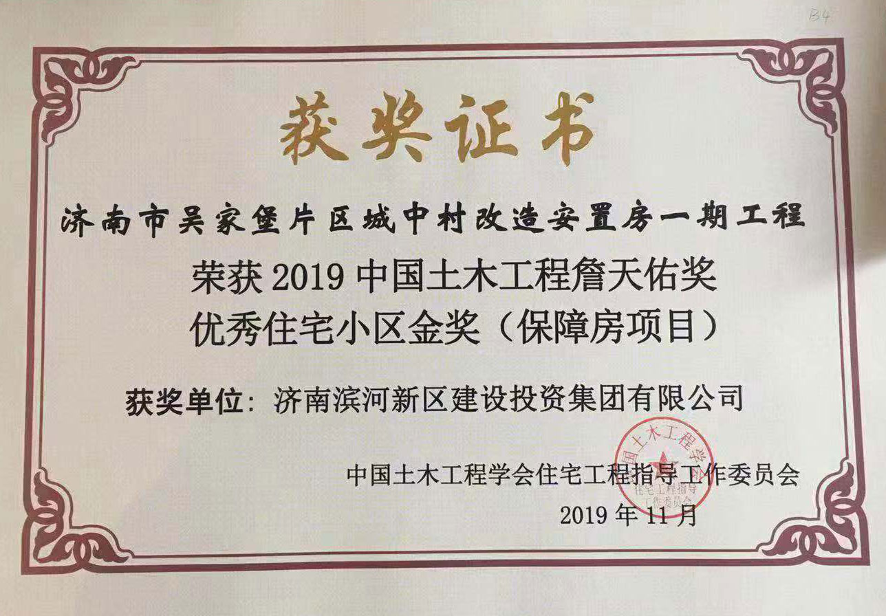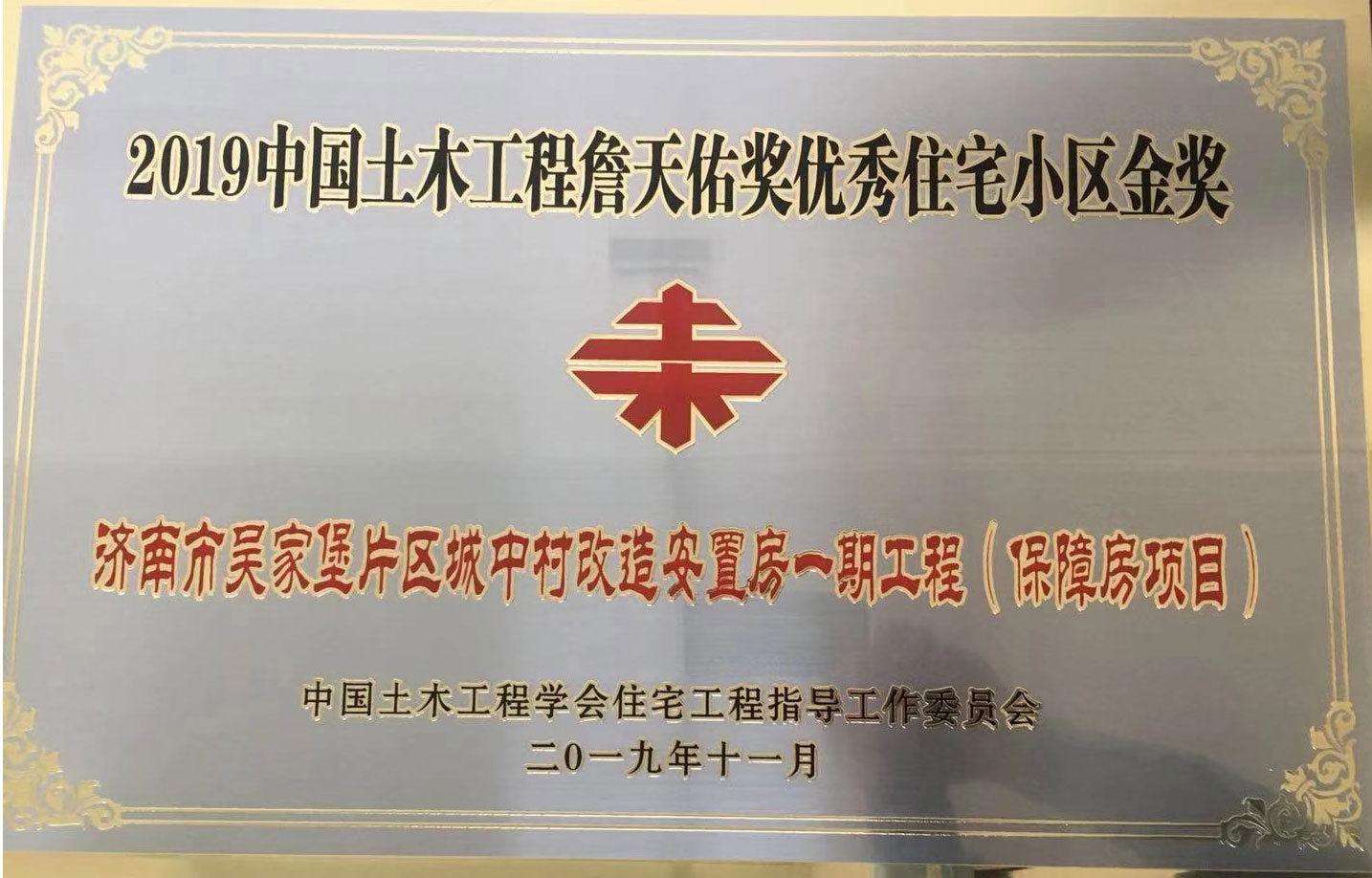 弘扬工匠精神,打造精品工程。作为济南市第一个多村整合的城中村改造项目,近日,由济南城市啪啪啦负责建设的吴家堡片区城中村改造安置房一期工程(以下简称吴家堡安置房一期)荣获2019中国土木工程詹天佑奖优秀住宅小区金奖。