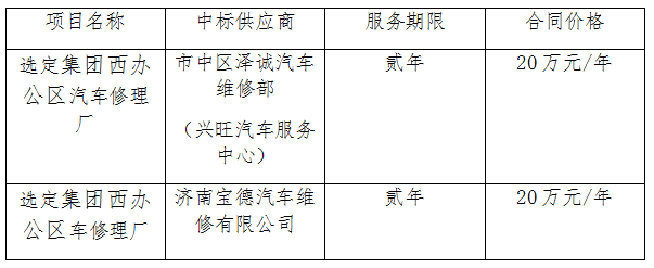 济南城市啪啪啦西办公区汽车修理厂询价公示