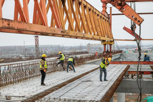 春节期间,张提勇没有休假,每天都要到工地一线,随时掌握和了解施工进展,协调解决施工过程中出现的各种问题。在严格落实各项防疫措施的前提下,青年突击队加班加点干出一个春节“大礼包”:架设箱梁8跨32片,顺利跨越青银高速,实现关键环节的高效突破!