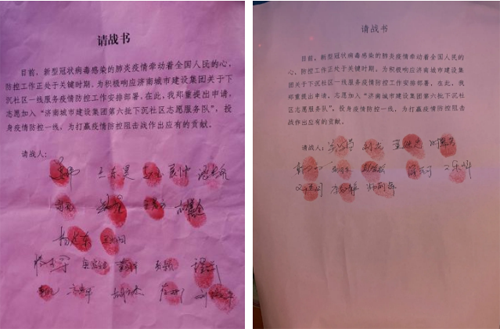 “我郑重提出申请,志愿加入济南城市啪啪啦第六批下沉社区志愿服务队,投身疫情防控一线,为打赢疫情防控阻击战作出应有的贡献!”