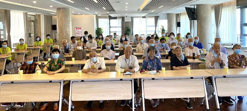 在金龄健康·山东济南养老服务中心的护理院内也开展了一场别开生面的庆七一活动。护理院的全体长者与护理员们共同观看了红色电影《建党伟业》,通过影片不仅重温了中国共产党建党的那段峥嵘岁月,还感受到了老一辈革命家在风雨飘摇的年代里为国家赴汤蹈火的革命情怀,增强了对中国共产党光辉历程的了解,激发了学习党史的热情。观影会结束后,护理院的长者们利用手势舞、京剧表演、作诗等方式来表达对中国共产党建党99周年的美好祝愿。