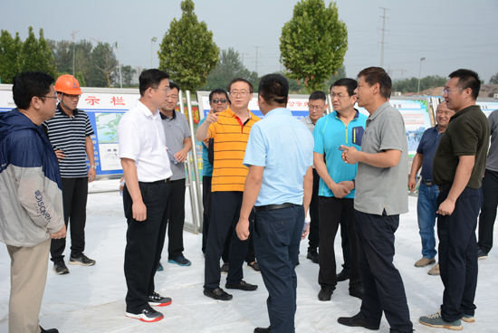 8月8日下午,济南市城乡交通运输局局长贾玉良,城市啪啪啦党委书记、董事长张海平等一行,来到由集团公司承建的奥体西路齐烟揽华工程项目施工现场,察看工程建设情况。集团公司党委书记、董事长张明生,副总经理赵振华及分公司相关人员陪同察看。