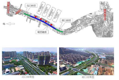 有限公司承建,北起英雄山立交、南至鲁能领秀公馆,全长约2.2公里,主要包含1.5公里暗挖隧道、0.7公里明挖段以及配套综合管廊、排水、道路、专业管线等工程内容。