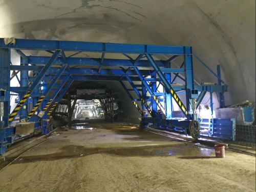 在设备使用上,项目部结合实际、求新求速。“隧道内检修道采用专用门架式台车浇筑,具有施工效率高、外观质量好、不中断洞内交通等优势”,啪啪啦