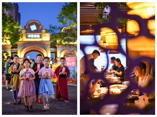 在餐饮住宿业态已初具规模的基础上,印象济南刚刚引入了集自营生鲜、休闲零食、进口商品、居家生活、智慧零售等于一体的1.2万平米的圣豪超市,丰富了园区业态,同时满足了周边居民的日常消费需求,进一步完善了片区的整体生活配套。为满足市民游客消夏需求,园区组织了“夏之韵印象济南·泉世界文化夜市”,以民俗文化、时尚、清新、消暑文创产品为内容主体,搭配互动娱乐活动,为市民游客提供一个干净、温馨、有趣的文化夜市。