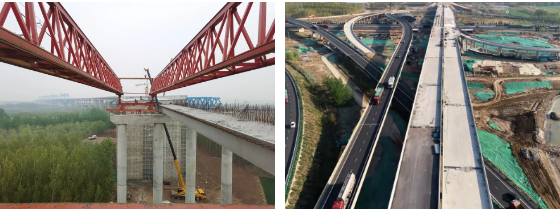 项目优化施工组织,大力推进施工进度。北岸引桥段现场共投入2台提梁机、1台架桥机、数辆运梁炮车,架梁现场始终是一片预制梁正在架设中,另一片梁便已泊在桥头预备待命。联通黄河主桥这一关键节点的达成,是项目施工组织扎实有序、大力推进的结果。项目将继续加大人员、设备、材料等投入,不断优化施工组织,集中优势力量,坚持24小时连续饱和施工,力争保质保量完成任务。