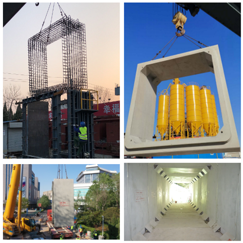 南门桥东桥改造工程人行箱涵从选模板、制作钢筋骨架、到浇筑养护,再到运输安装,每一步都稳扎稳打精雕细镂。箱涵装配式施工不仅可以提质增效,降低对周边的影响,且相较于传统箱涵从绑扎钢筋、立模板、拆模到养护的流程,工期大幅提前。