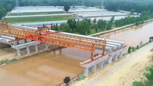 济乐高速南延线工程TJ-1标段最后一片预制箱梁位于邢家渡引黄河干渠上空,其结构长度为40米,纵向跨度大,架设难度高。为确保最后一片预制箱梁的顺利架设,项目人员凝心聚力、攻坚克难,制定应急预案、统筹调配机械设备,强化箱梁架设安全风险源防控,严格实施全员、全过程安全检查,确保运梁、架梁等各项工序安全可控。