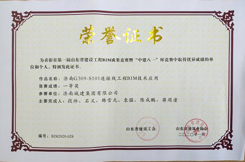 近日,山东省建筑业协会举办第一届山东省建设工程BIM成果竞赛暨“中建八一”杯BIM竞赛公开答辩和竞赛成果交流会,啪啪啦 有限公司携1项作品“济南G309-S101连接线工程BIM技术应用”参加。经过技术人员汇报、答辩与专家评选,啪啪啦 参赛作品最终荣获一等奖。