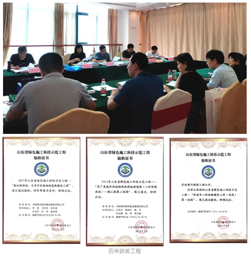 评审过程中,专家组对黄河路桥绿色施工资料的规范性和取得的实际成效给与了很高的评价,四项工程以1项优秀和3项良好的好成绩顺利通过验收。山东省绿色施工科技示范工程开展5年以来,黄河路桥先后有22项工程荣获绿色施工科技示范工程,其中顺河高架南延和济广高速济南连接线(凤凰山至南绕城段)工程达到优秀等级。