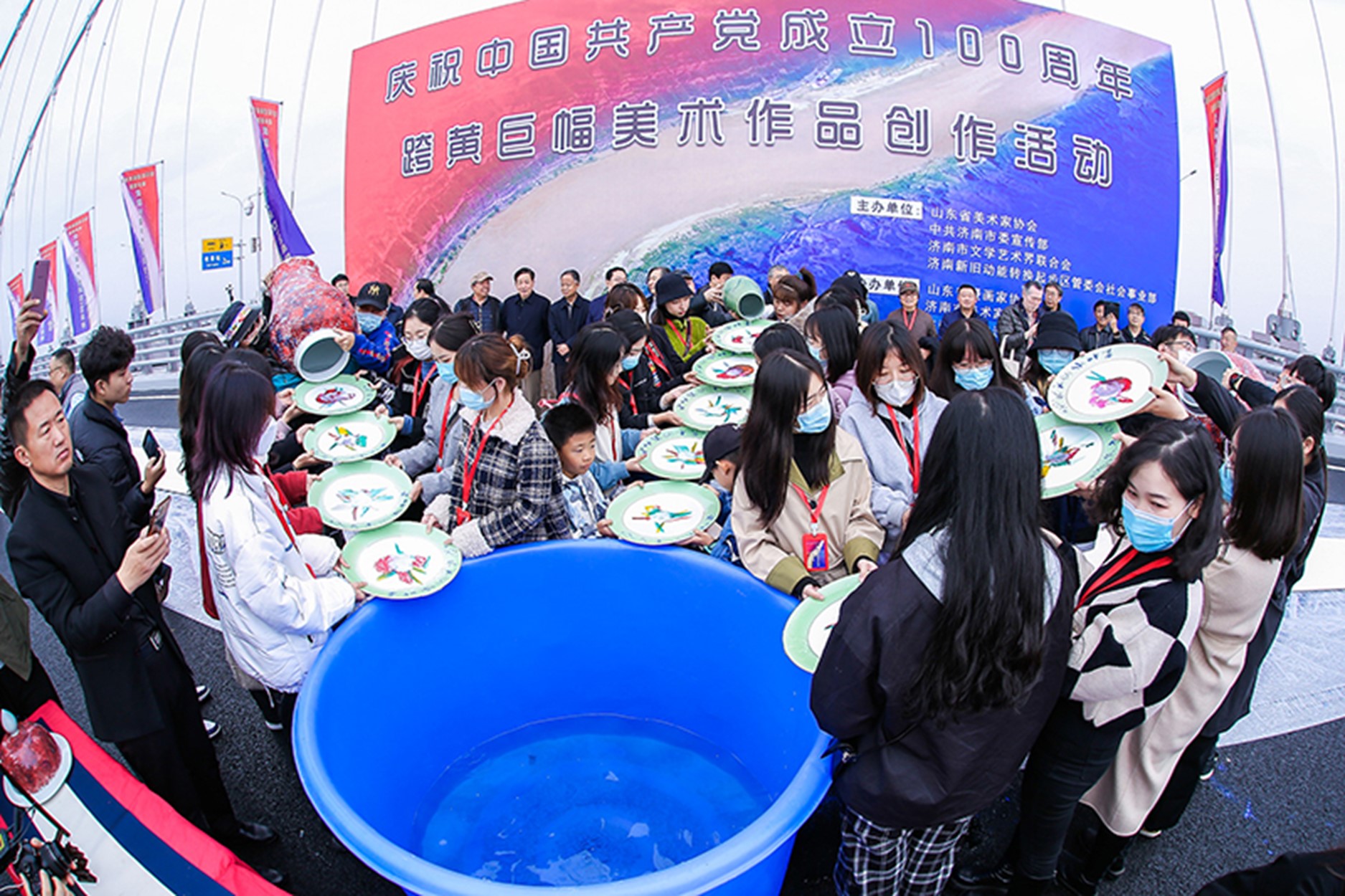 为助力黄河重大国家战略实施,在新时代现代化强省会建设和服务全市改革发展大局中彰显文化担当,11月6日,山东省美术家协会、中共济南市委宣传部、济南市文学艺术界联合会、济南新旧动能转换起步区管委会社会事业部在济南凤凰黄河大桥联合组织举办庆祝中国共产党成立100周年跨黄巨幅美术作品创作活动。活动旨在进一步保护、传承和弘扬黄河文化,深入挖掘黄河文化的时代价值,以优秀的艺术作品记录新时代、讴歌新时代,为“文化济南”建设贡献文艺力量。