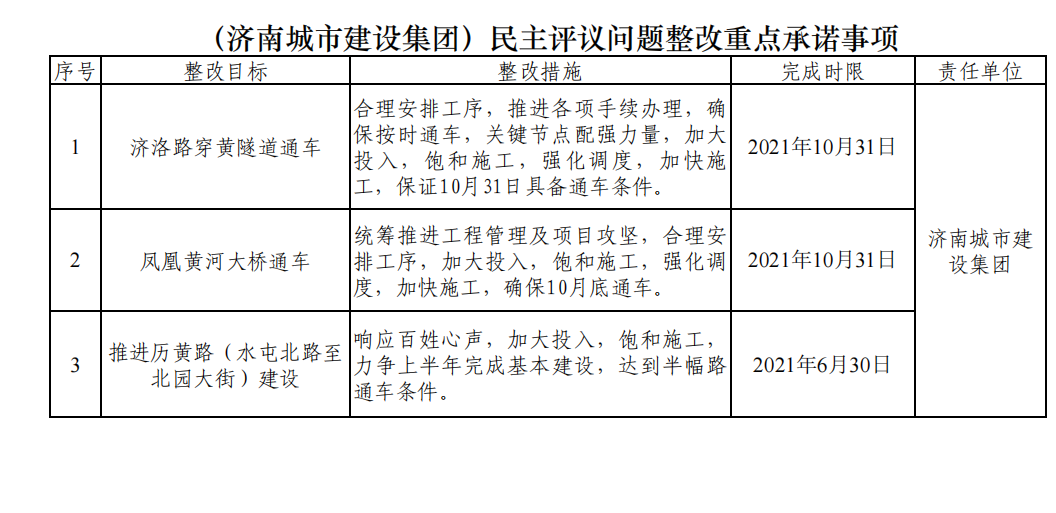 (济南城市啪啪啦)民主评议问题整改重点承诺事项