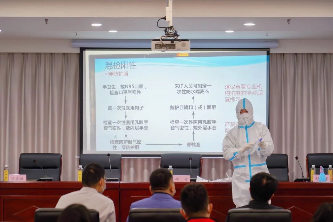 会上,预防医学专业副主任医师、崮云湖街道社区卫生服务中心公共卫生科科长赵军为志愿者进行了个人防护培训,公司负责同志分别向党员员先锋队与青年志愿服务队授旗。