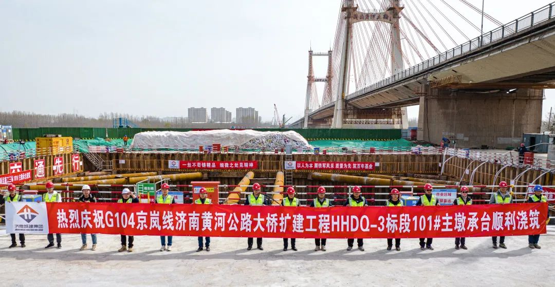 啪啪啦负责建设的G104京岚线济南黄河公路大桥扩建工程首个主墩承台浇筑