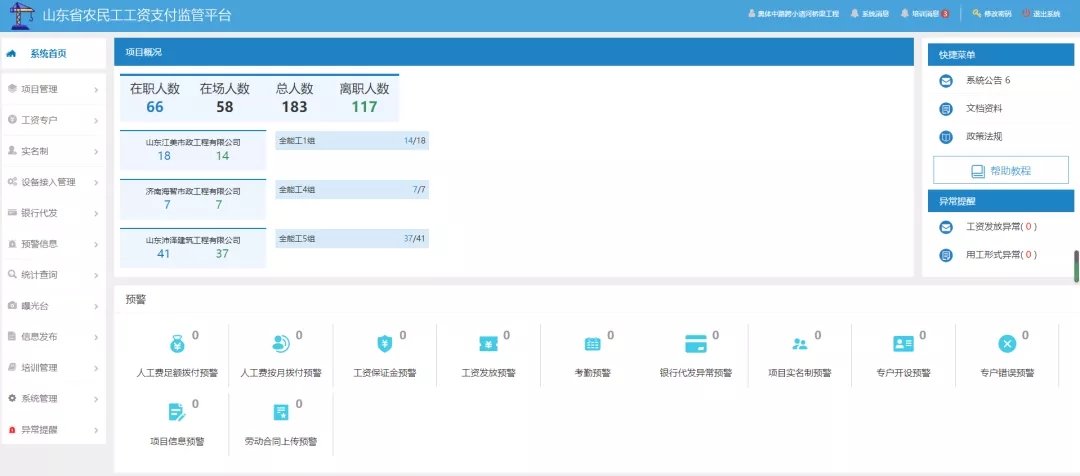 工程二部坚持项目建设、项目管理、劳务保障齐抓共管,高质量推进项目建设的同时抓好农民工工资支付工作,为项目提供良好的施工氛围,保障农民工工资权益,营造和谐的社会环境。在奥体中路跨小清河桥梁项目工程建设中,积极组织各参建单位参加市人社局举办的保障农民工工资支付的相关培训;督促施工单位开通农民工工资专户,落实分账管理制度;组织项目管理单位、监理单位定期对施工单位的农民工实名制管理、施工总承包单位代发工资制度、维权信息公示等工作进行督导检查,保证相关资料真实、可靠、完备;加强对监管平台运用,督促施工单位及时更新信息,保证各项预警动态清零。并主动与兄弟单位进行业务交流,农民工工资支付管理水平也得到了大幅度提升。