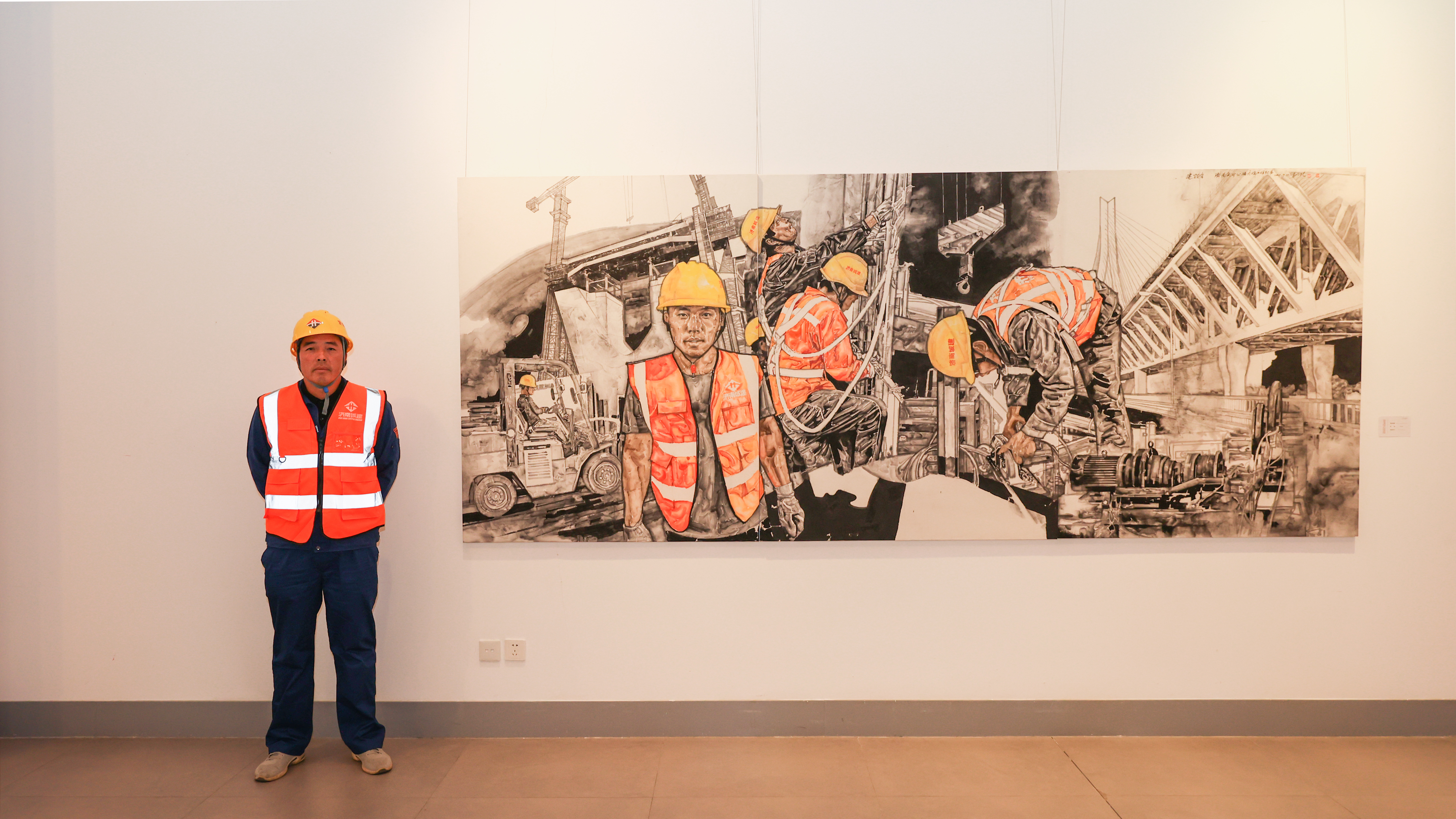 作为创作者,山东省中国画学会副会长、山东省美协综合材料绘画艺委会副会长李兆虬表示:“从高密乡下来到济南,至今已有40多年,这期间见证了济南的成长,通过此次创作更体会到城市建设者特别能战斗、特别能吃苦、特别能奉献的精神,未来将运用自己的专长,为社会服务、为人民服务、为劳动者发声,用画笔记录城市蝶变新画卷。”