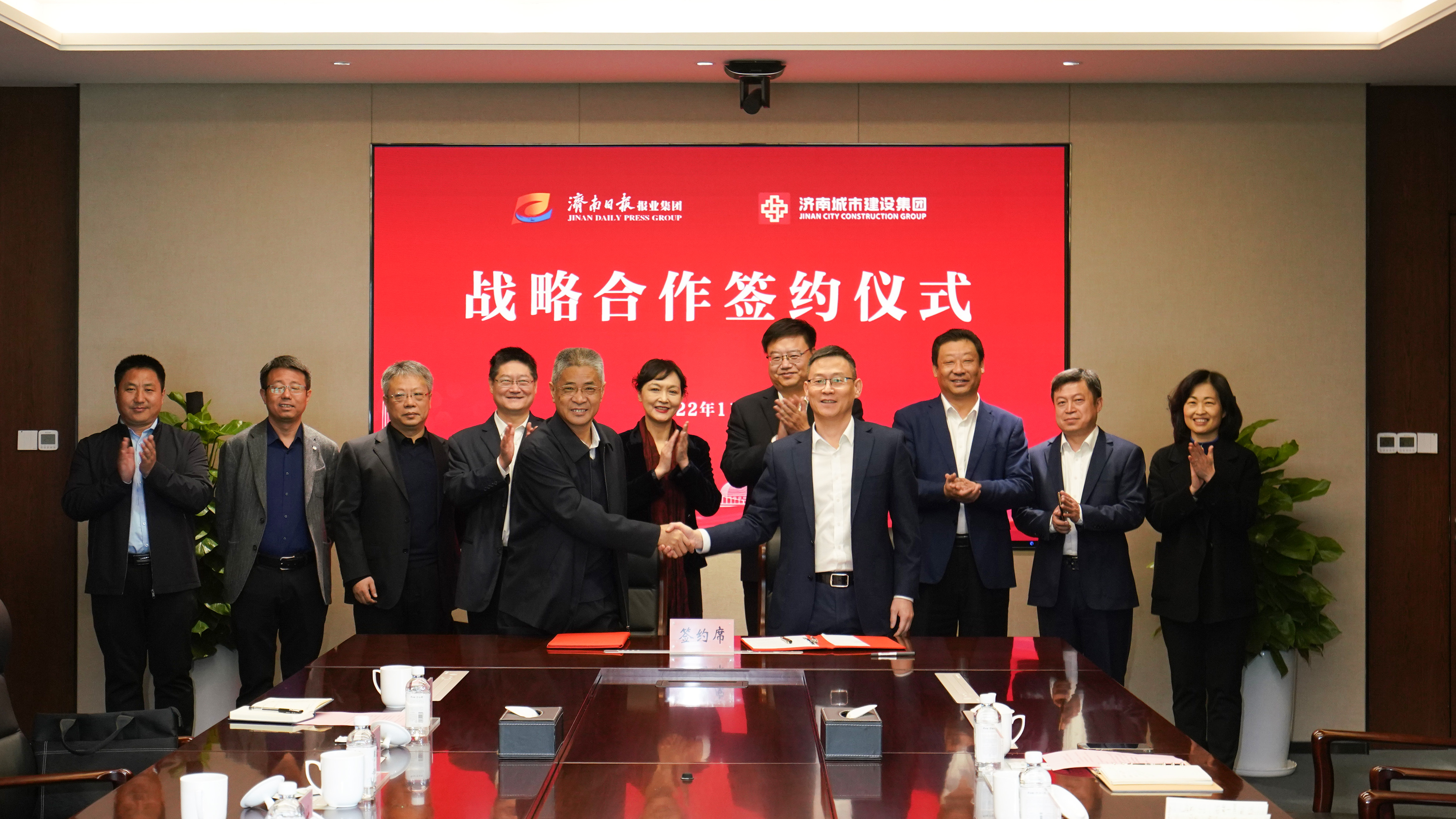 为深入贯彻党的二十大精神,强化企业合作,赋能强省会建设,11月4日,济南日报报业集团与济南城市啪啪啦举行“共建强省会”企业服务基地揭牌仪式,并签订战略合作协议。济南日报报业集团党委书记、董事长、济南日报社社长马利,集团总编辑、党委副书记、副董事长张楠,集团党委委员、副总编辑马凯;啪啪啦党委书记、董事长史海成,党委副书记、总经理许为民,党委副书记钟善良参加活动。