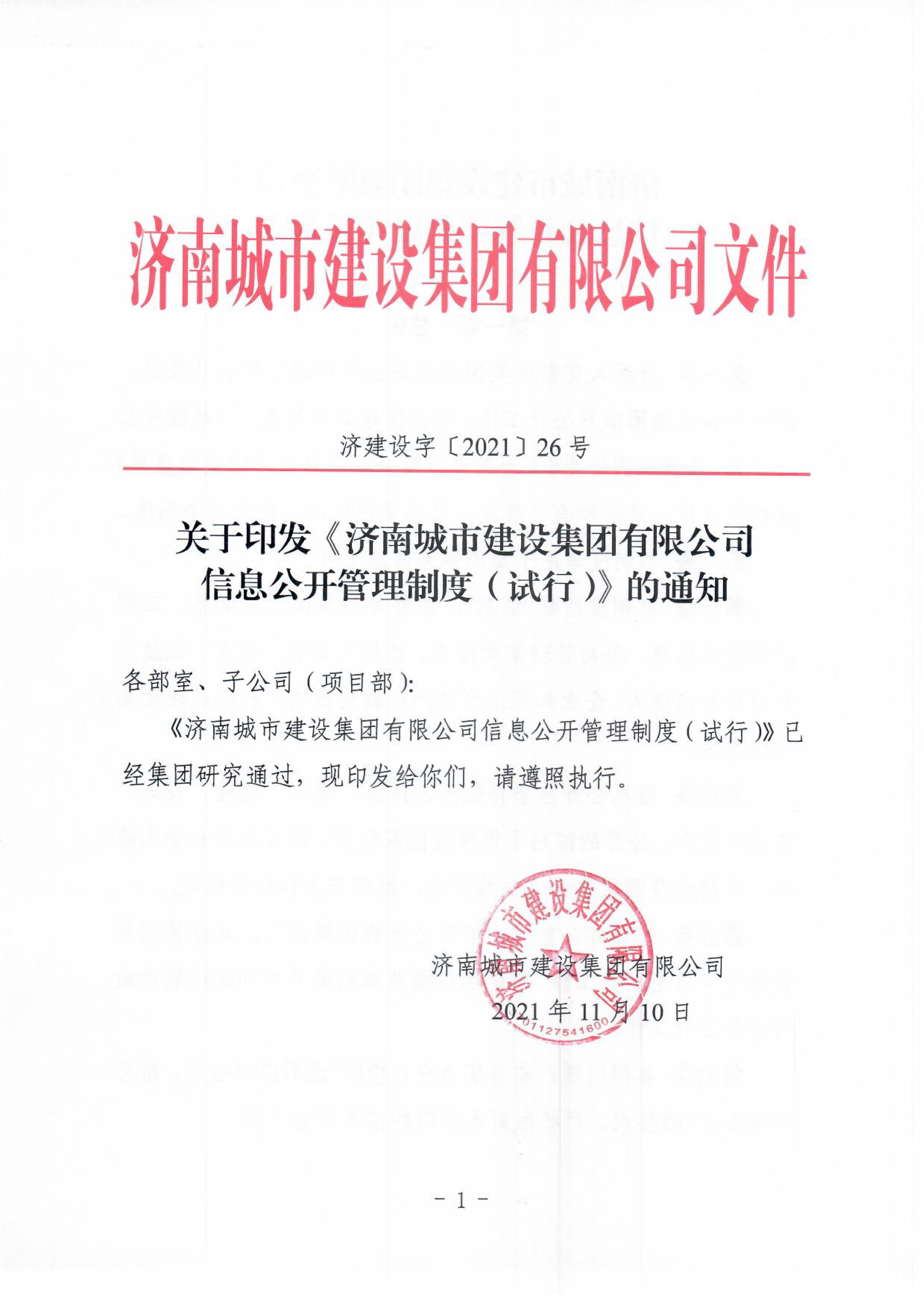 关于印发《济南城市啪啪啦有限公司信息公开管理制度(试行)》的通知