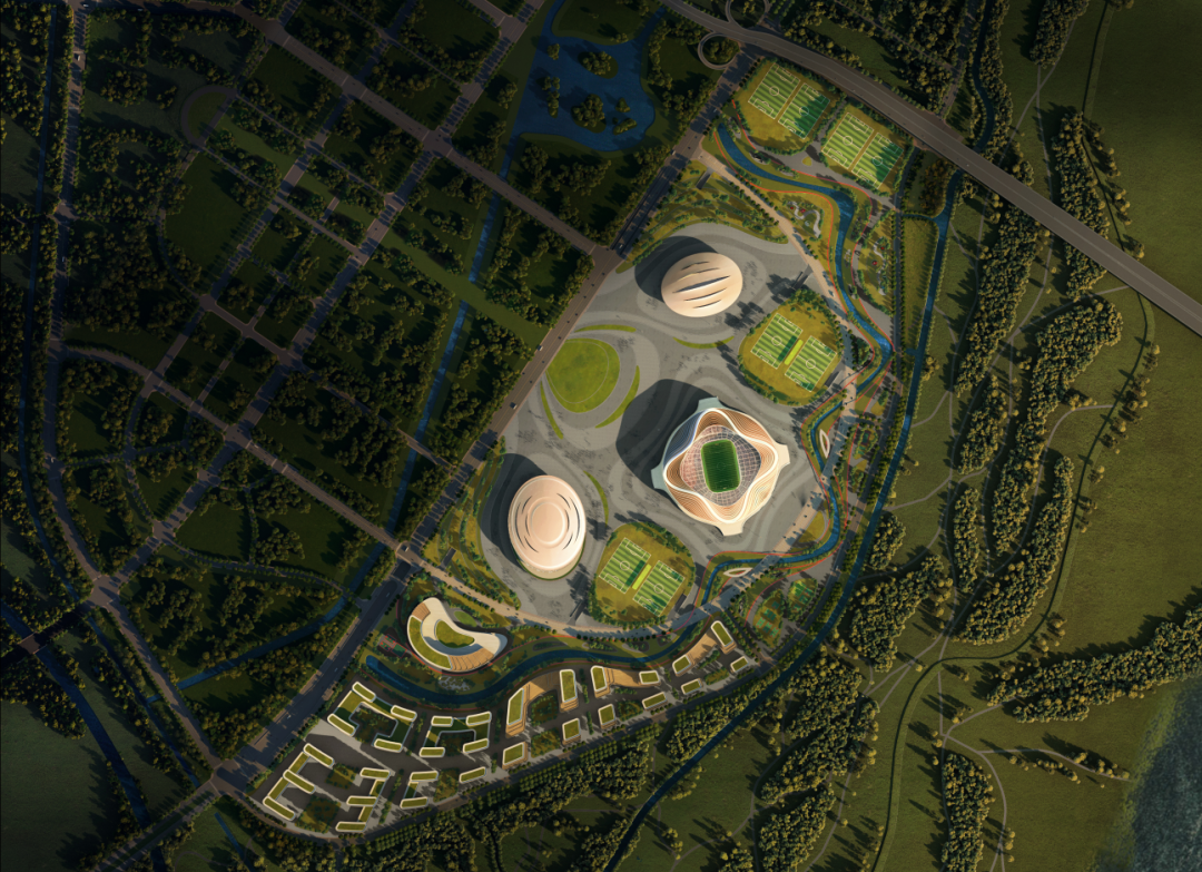 专业足球场项目,总建筑面积约20.1万平方米,其中地上建筑面积约14.8万平方米,地下建筑面积约5.3万平方米。包含6万余座席,具备承担世俱杯、亚洲杯等国际足联A级赛事及国内大型赛事等专业赛事。