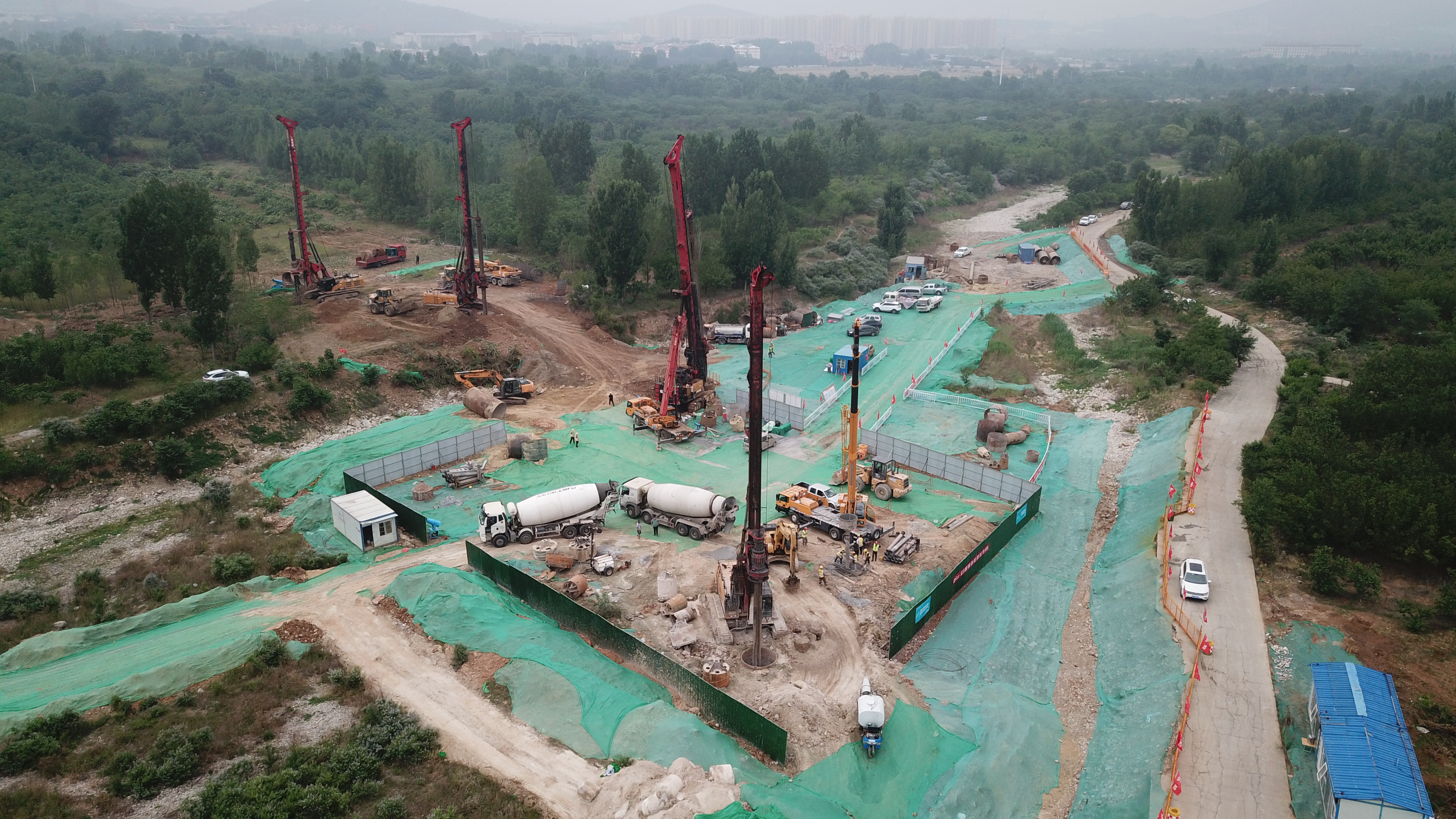 西巨野河大桥左幅长783.98米,右幅长786.08米,是整个项目最长的桥梁。西巨野河大桥箱梁分为30米、40米,桩基最长48米,大桥下部地质结构极其复杂,部分地段衍生带有大量不规则容式溶洞,极易造成塌孔、卡钻。