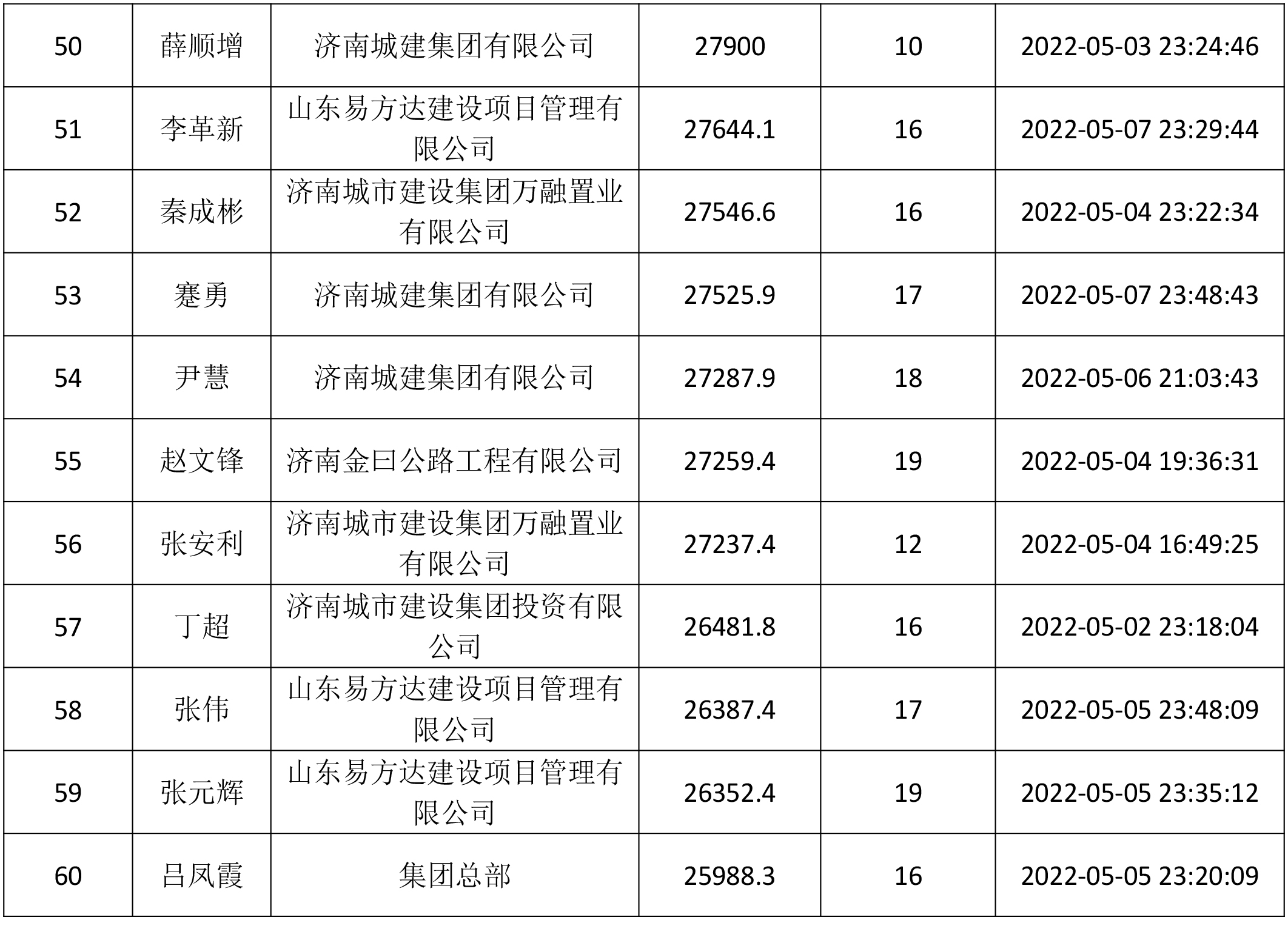 由共青团济南城市啪啪啦有限公司委员会主办,共青团济南金曰公路工程有限公司委员会、济南新城文化传媒有限公司承办的“青春有梦 建设无疆”——职工线上健步走活动于5月13日正式落下帷幕。此次活动共持续19天,参与人数达1716人。