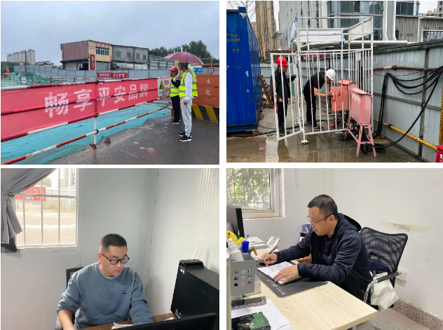 针对骤变天气,值班人员密切关注、加强巡视、及时汇报。组织人员对所辖施工标段的生活办公区、施工现场、拌合站等区域进行巡视检查。暴雨期间,多次进行现场巡视,并对出现积水的地方进行抽水处理,及时消除安全隐患。