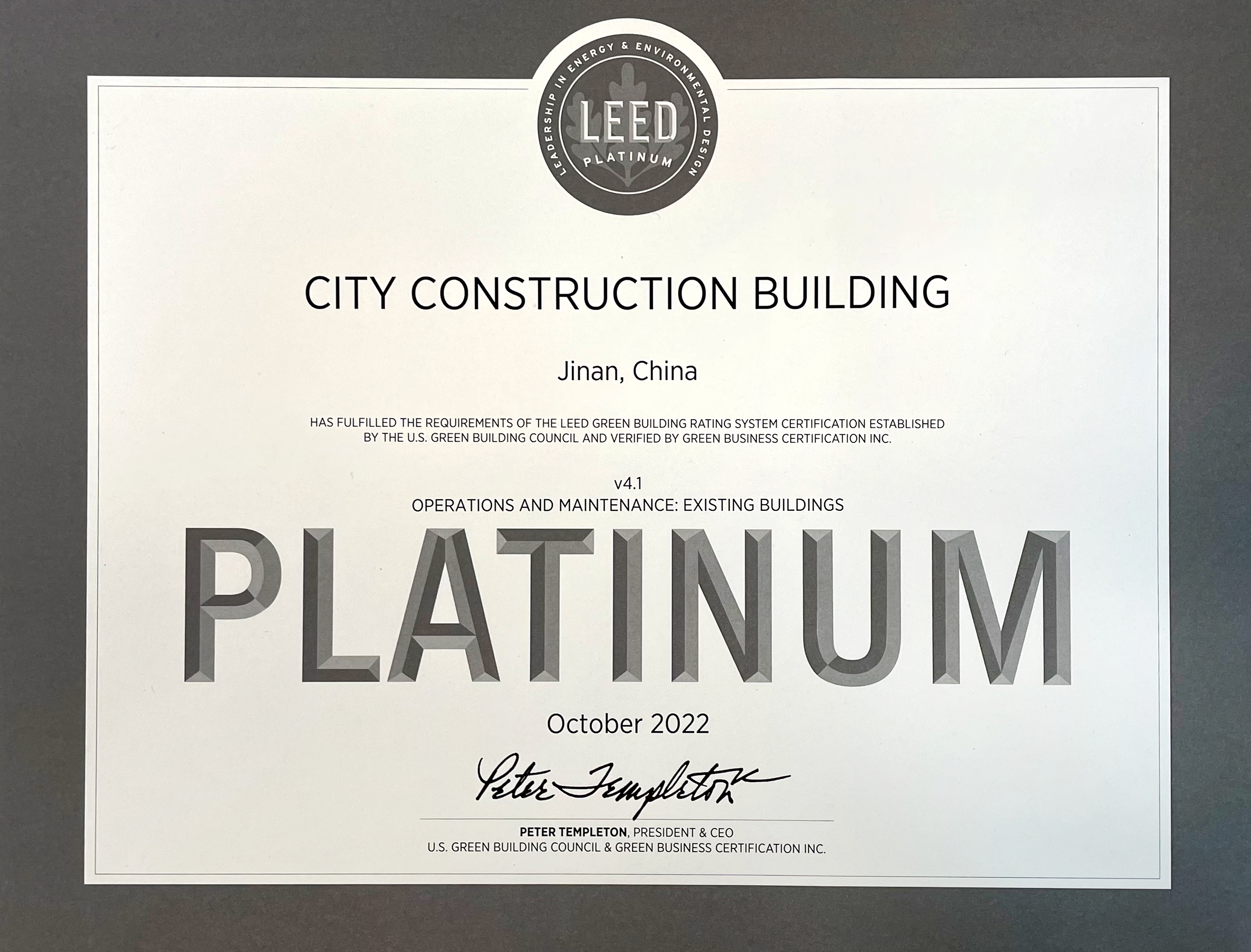 作为已经投入使用并运营成熟的项目,在认证过程中,济南城市建设大厦始终以国际绿色建筑标准为要求,将标准化的可持续实践应用于绿色设计、施工和运营当中,通过节约资源,改善碳足迹,为环境带来正面改变,以绿色建筑为依托,持续获得经济利益、提升生产力价值,顺利实现大厦的保值增值。