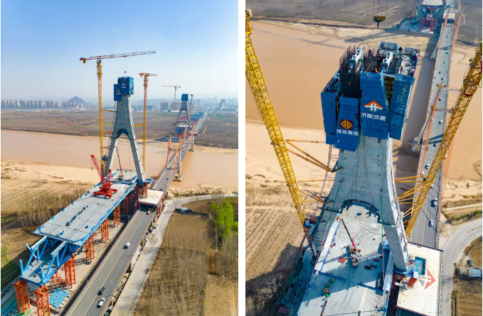 目前黄河大桥主桥,下部结构施工完成,主桥主塔总高度168.6米,已施工至156.3米,即将封顶;钢桁梁架设完成50%;零点立交济南西岗收费站及跨将军路南侧匝道桥拆除完成,正在进行新建匝道现浇箱梁施工。下一步,啪啪啦将集中优势资源、优势力量、优势管理、科学组织、有序推进,确保项目按时间节点有序推进。