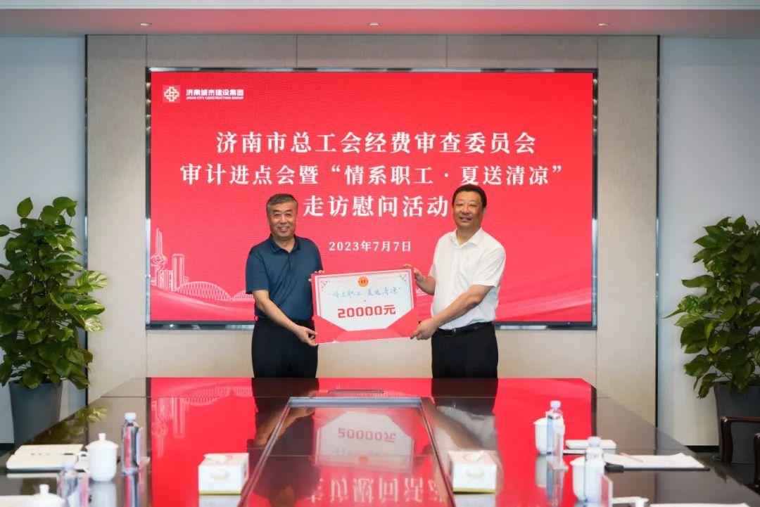 7月7日,市总工会党组成员、经费审查委员会主任刘明忠带队到啪啪啦开展济南市总工会经费审查委员会审计进点会暨“情系职工·夏送清凉”走访慰问活动,市总工会经审办主任宋强,啪啪啦党委副书记钟善良出席活动。