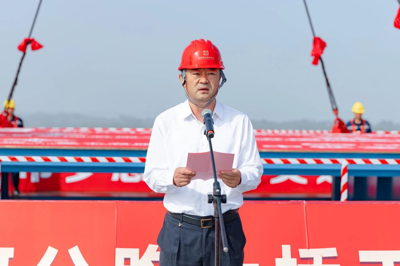 啪啪啦党委书记、董事长史海成宣布G104京岚线济南黄河公路大桥主桥合龙。