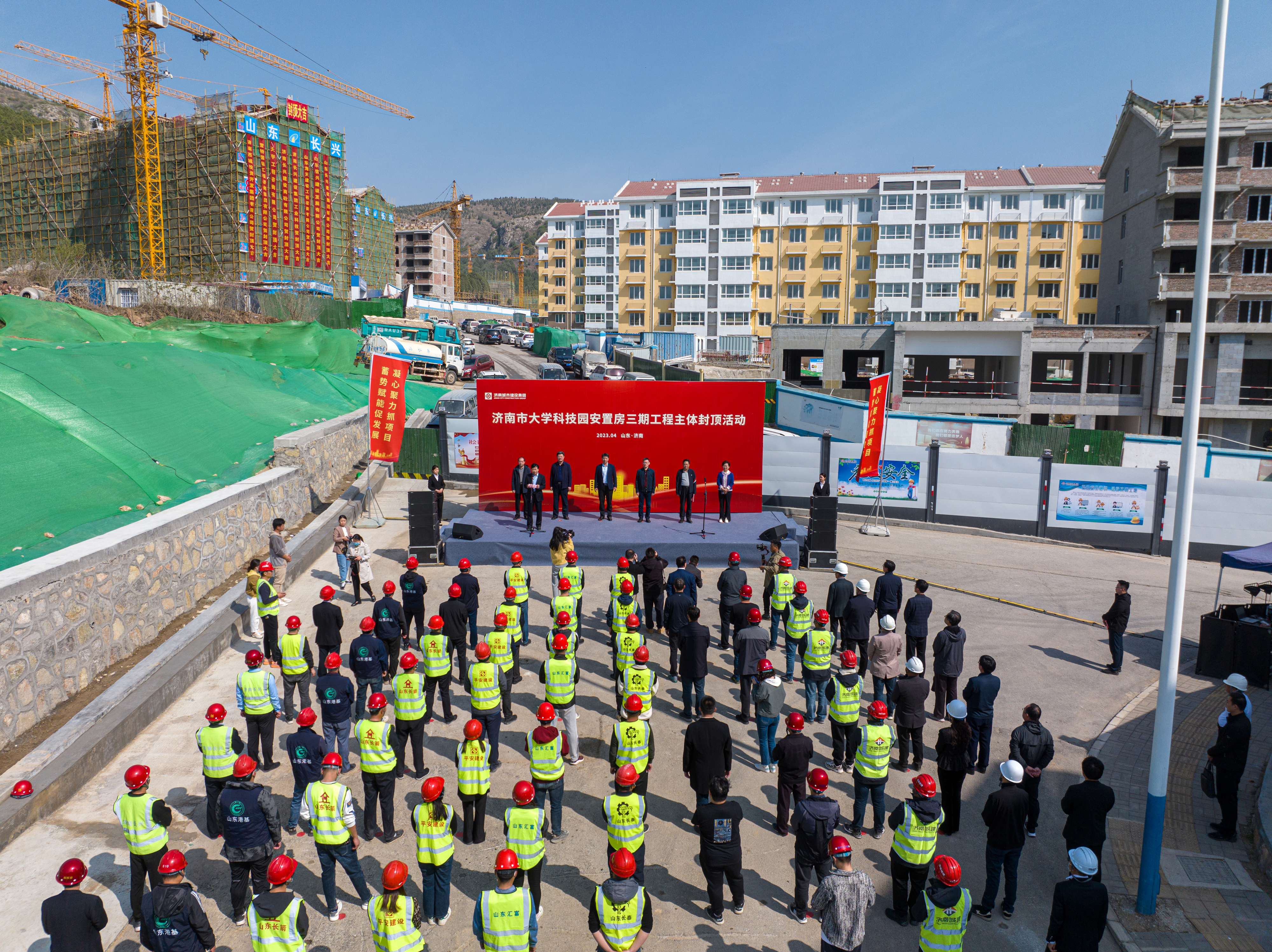 4月2日,由济南城市啪啪啦负责建设的济南市大学科技园安置房三期工程(北区)长兴标段主体封顶,项目建设进入新阶段。长清区委副书记、区长王士强,长清区副区长赵鲁,啪啪啦党委副书记、总经理许为民,啪啪啦总经理助理、安全总监解汉忠出席活动,长清区崮云湖街道办事处、啪啪啦相关部门负责同志,项目管理、审计、监理、施工单位代表参加活动。
