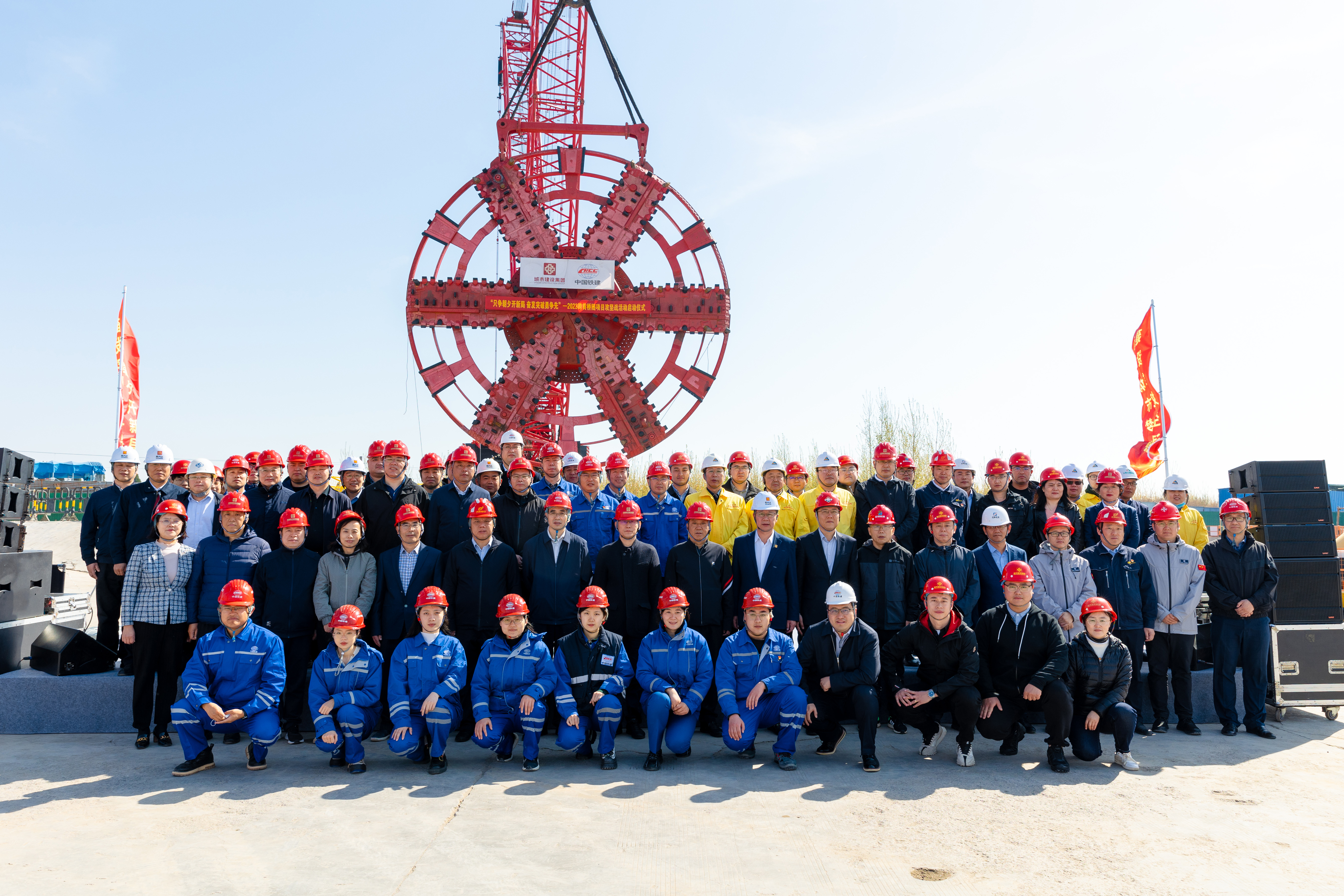 活动现场,与会人员共同启动并见证了北延隧道“泰山号”盾构机刀盘顺利吊装下井。
