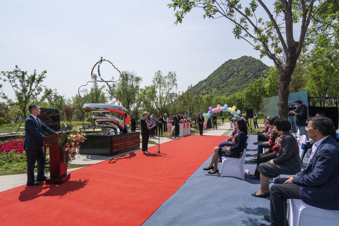 5月9日,济南国际友城花园——芬兰万达友城花园在济南举行开园仪式。副市长杨丽与芬兰驻华大使孟蓝共同为芬兰万达国际友城花园开园剪彩。