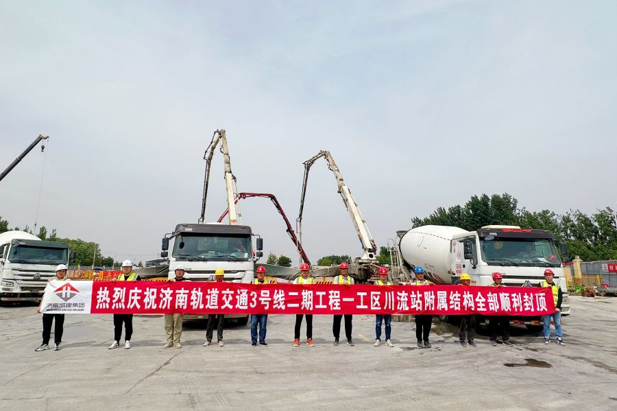 公司承建的济南轨道交通3号线二期川流站2号风亭提前13天完成顶板浇筑,标志着川流站附属结构全部完成封顶,成为全线第一个主体及附属结构全部封顶的车站。