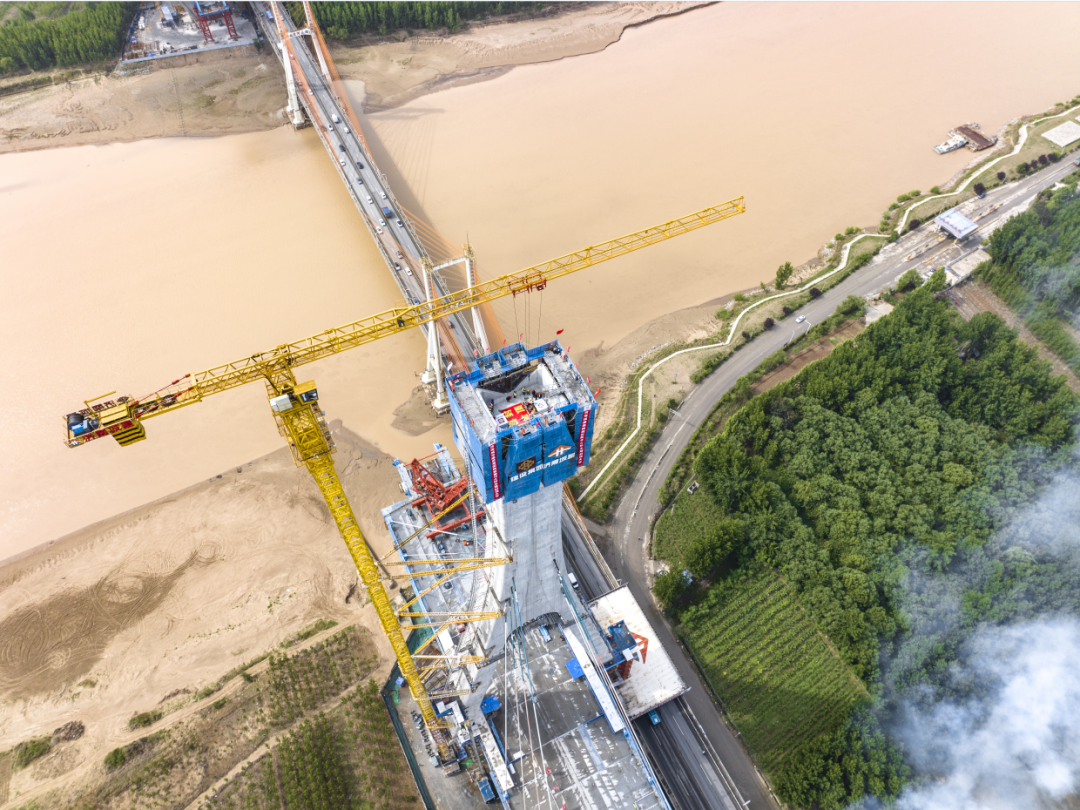 公司参与承建的G104京岚线济南黄河公路大桥扩建工程主桥为双塔双索面公轨两用钢桁梁斜拉桥,主跨488米,是黄河上在建最大跨径公轨两用斜拉桥。主桥索塔高168.6米,宝瓶形构造,造型新颖、施工难度大、技术要求高。项目部严格按照住建部、省、市危险性较大的分部分项工程安全管理规定、危险性较大的分部分项工程专项施工方案编制指南及相关要求,成立技术创新小组、施工部署方案策划评审领导小组等组织机构,充分调动技术人员积极性、创造性,编制了《索塔专项施工方案》,并成功应用于本工程索塔施工中,达到安全生产、降本增效的目的,为推动项目安全有序建设蓄势赋能。