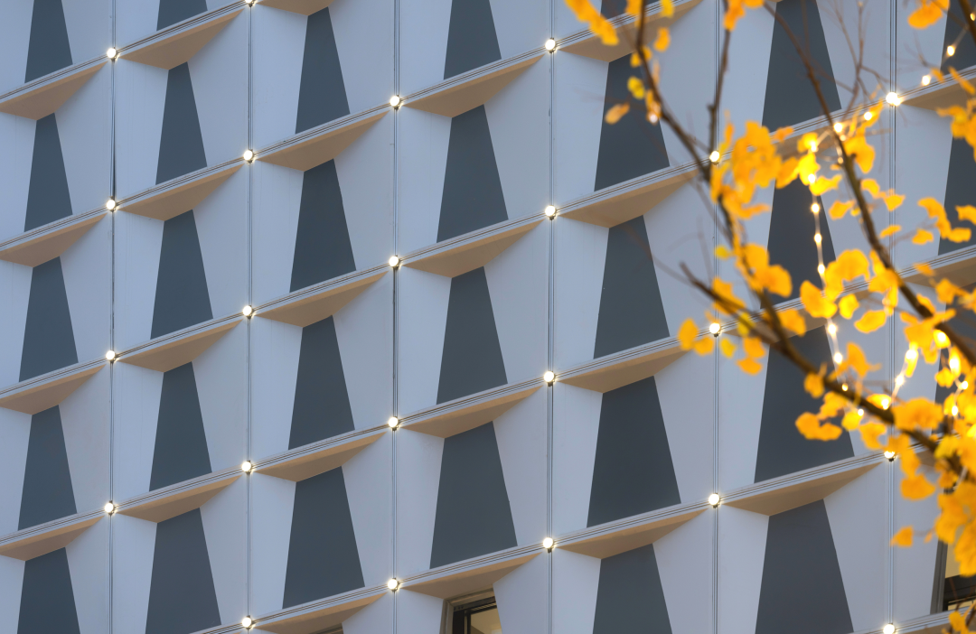 天风锦都项目位于济南市槐荫区,远观风云平静,近看风帆扬起,潺潺流水与汩汩喷泉的水景,加之抽象风帆,隔离嘈杂的城市道路与车流,形成广场艺术空间。邻边水景环抱,远处萤火点点,映衬建筑,大面积白色折线艺术的景墙,形成半围合室外洽谈区,艺术广场白天是中小型营销活动的举办地、唯美浪漫的室外洽谈区,功能复合,灵活多变。