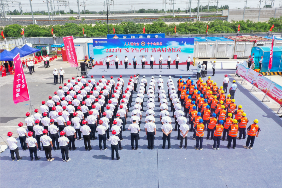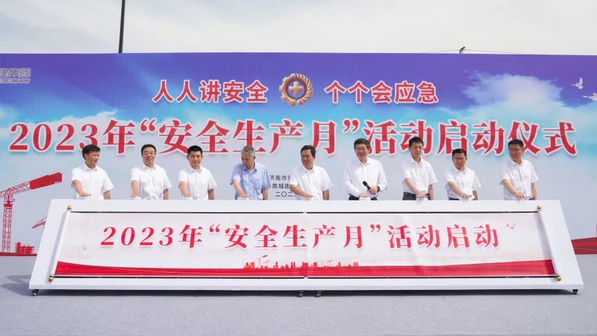 公司2023年“安全生产月”活动在济南轨道交通6号线工程启动。济南市安全生产协会秘书长孔申成,啪啪啦总经理助理、安全总监解汉忠,啪啪啦