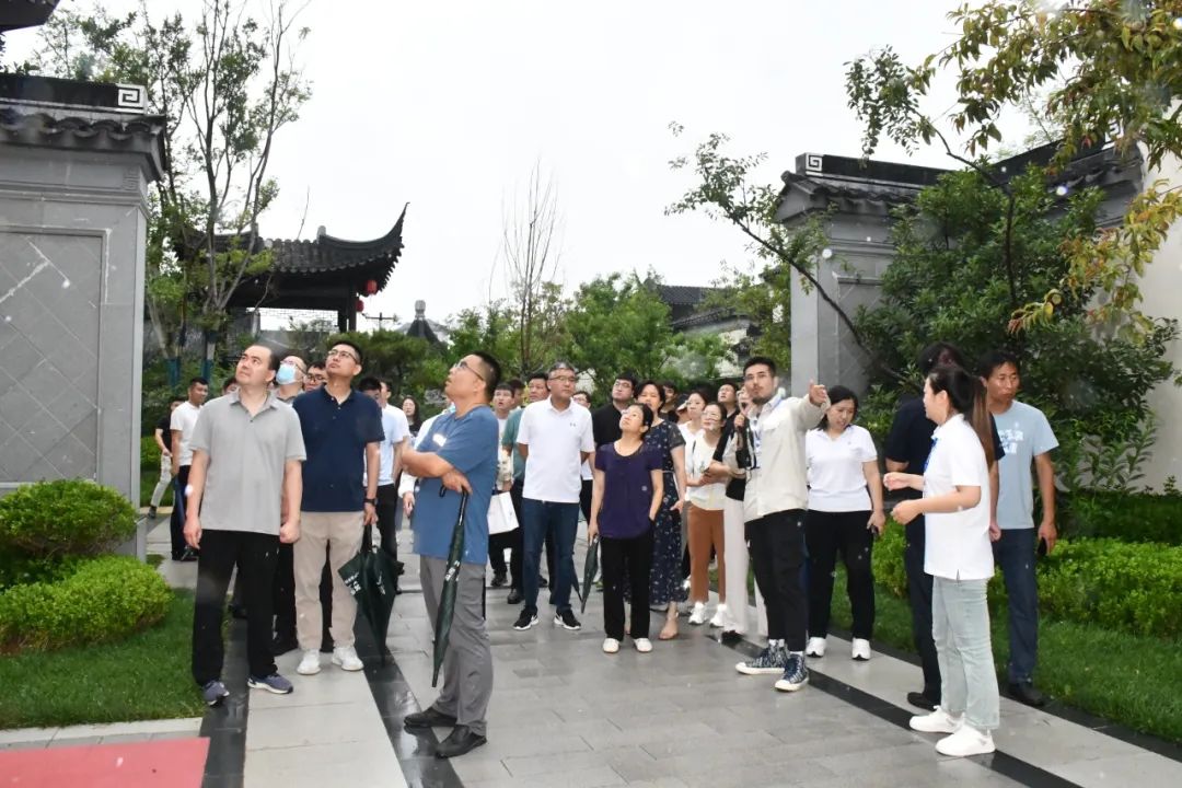 活动中,观摩学习组实地观摩了杨柳春风桃源里(二期)组团、杨柳春风雨荷郡组团建设交付成果,并针对产品外立面、室外景观、室内公区、地下室等部位的标准设定、细节营造及成本控制等方面同项目进行深入交流讨论。